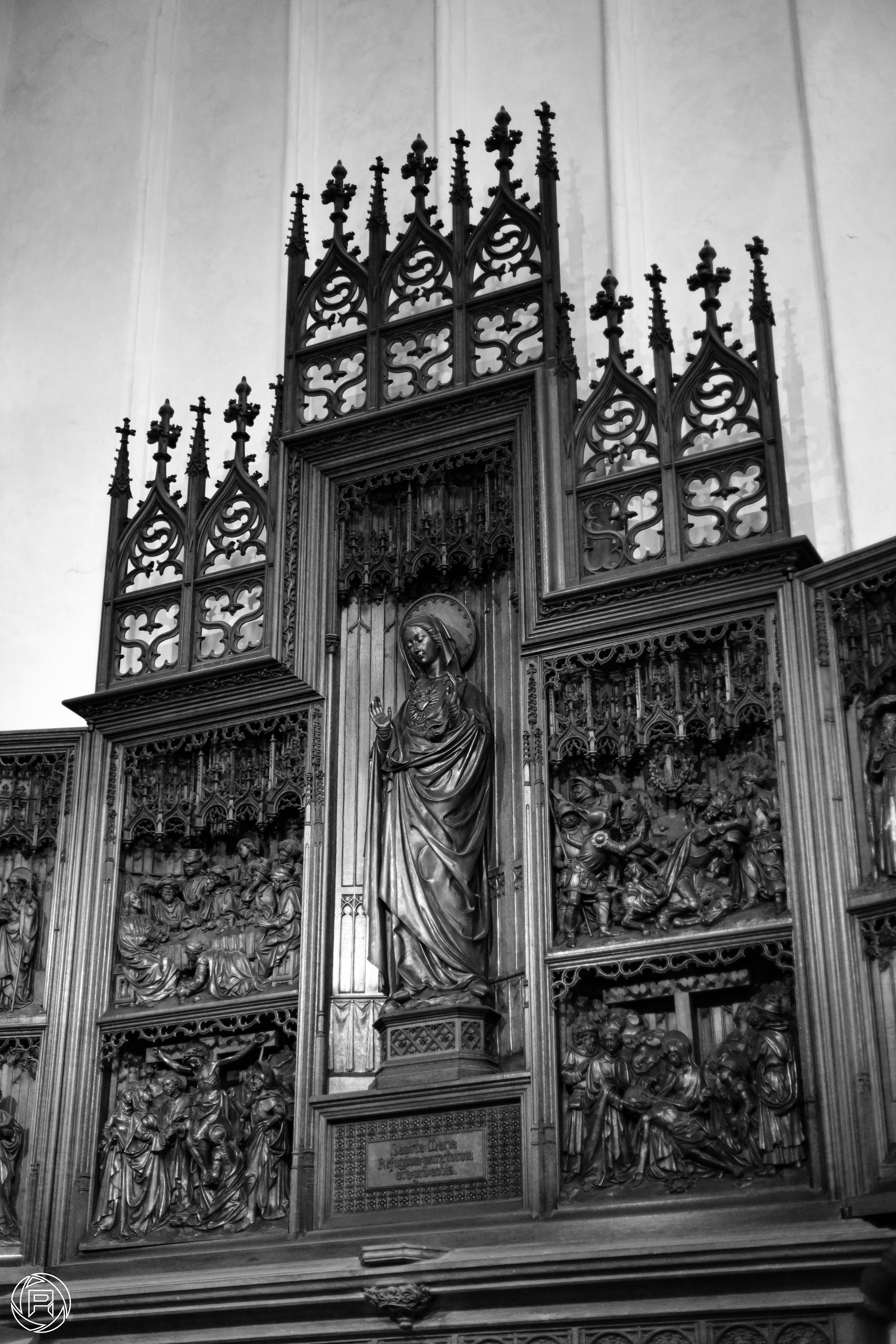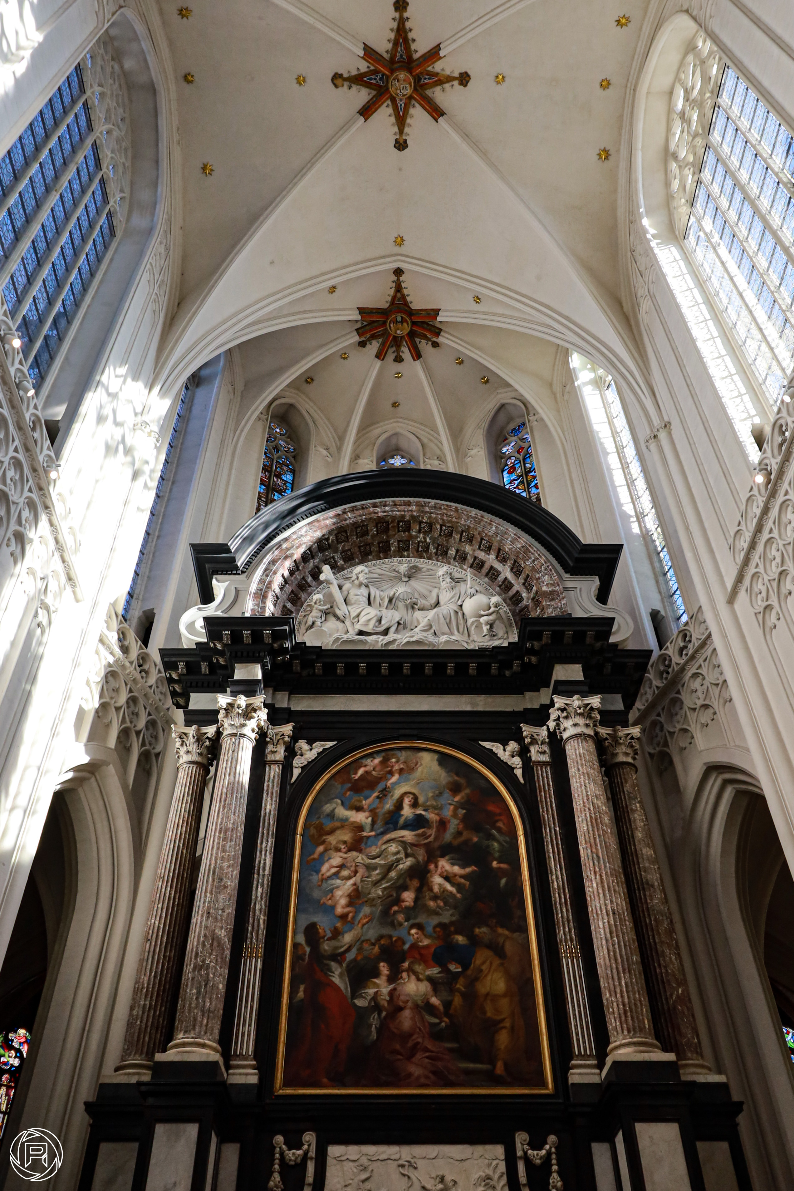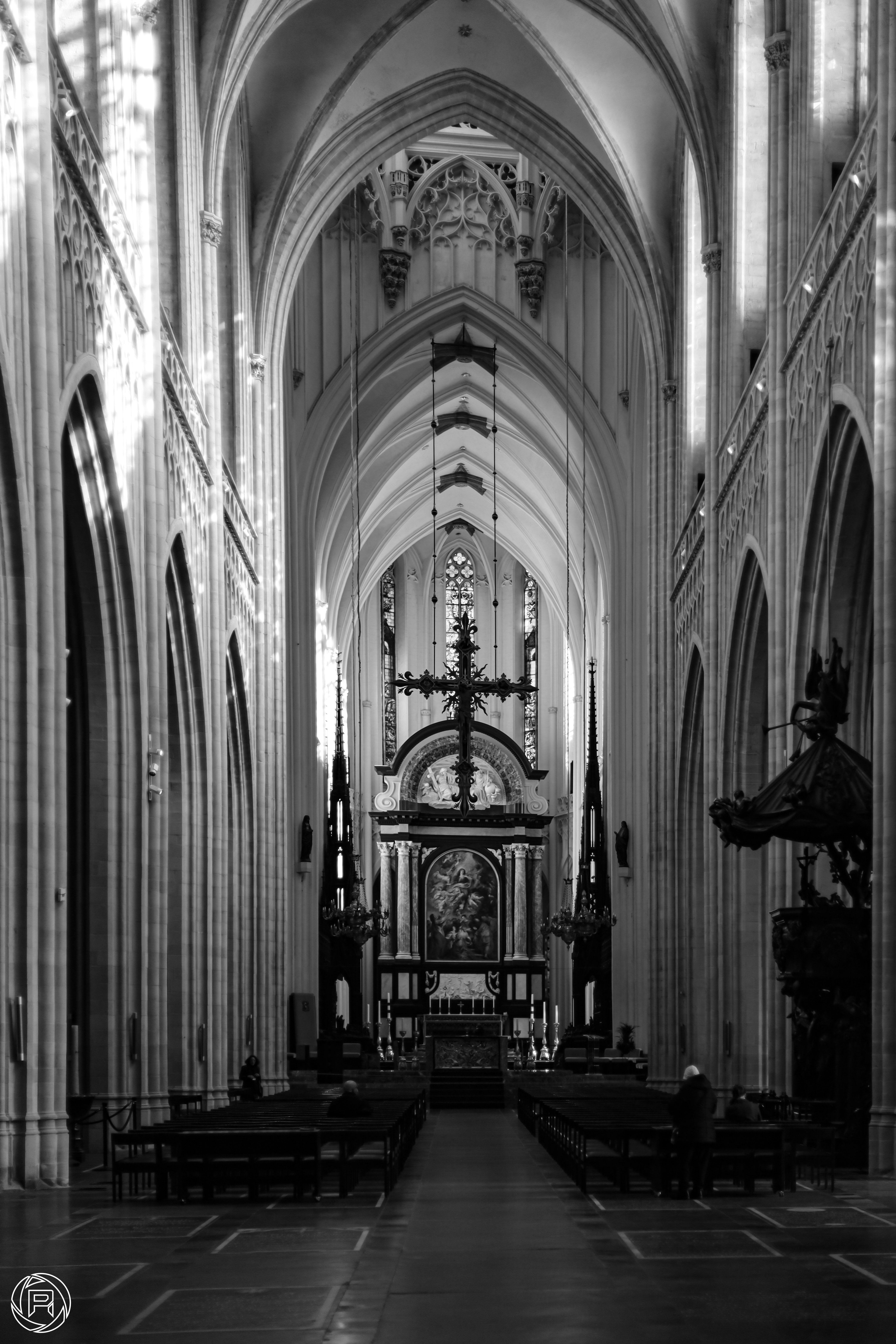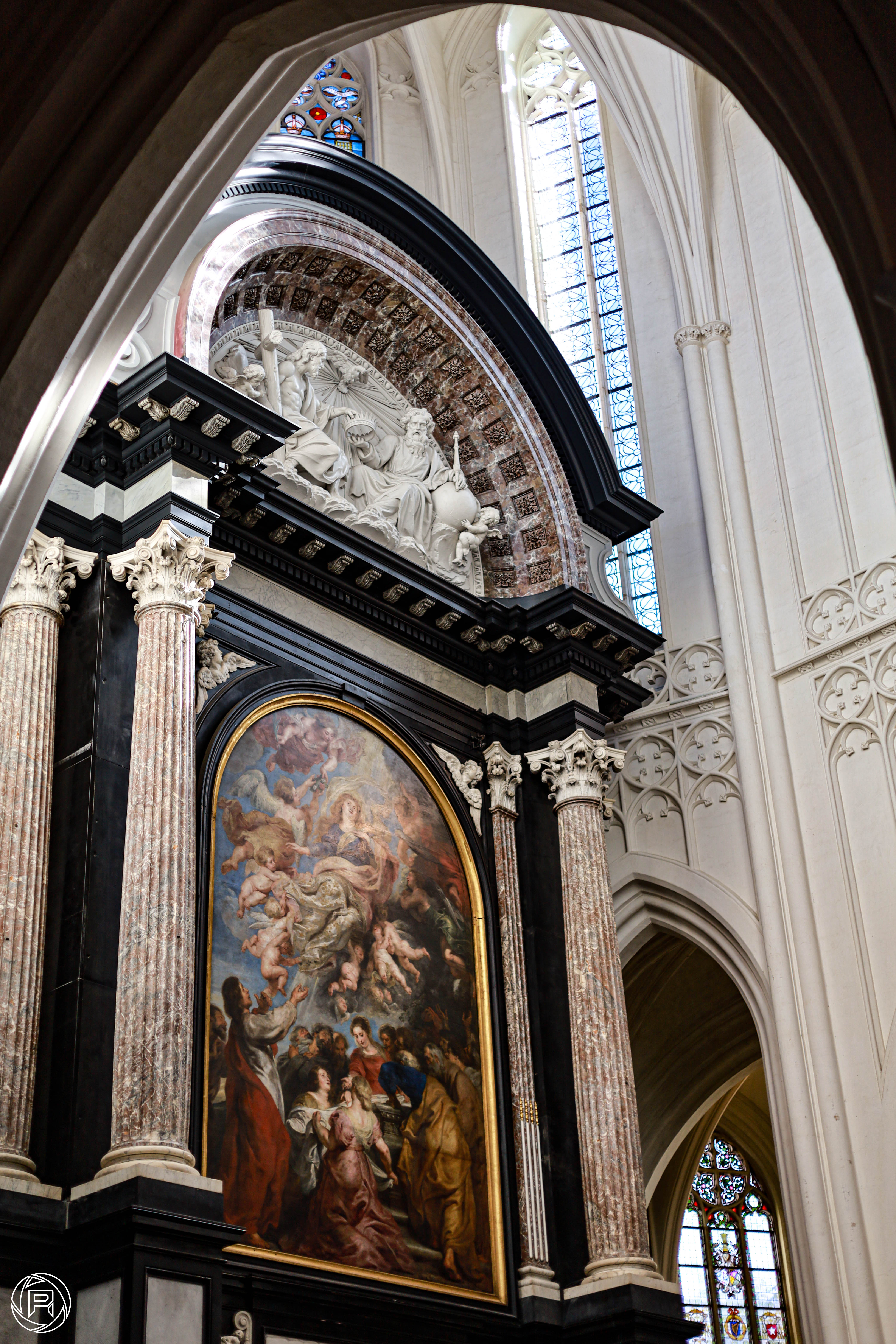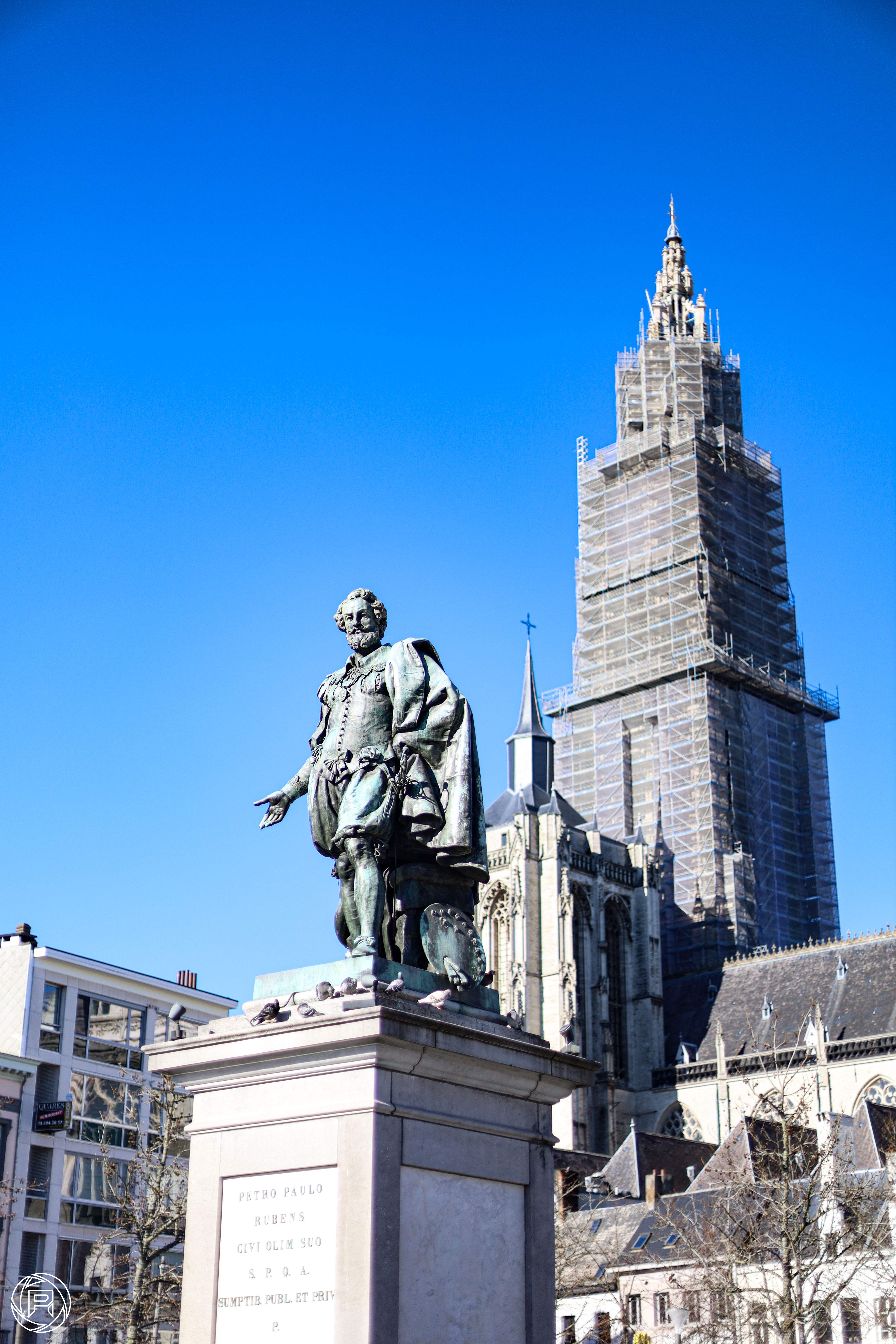 ISO: 100 | Focal Length: 50 mm | Aperture: ƒ/1,4 | Shutter Speed: 1/160Antwerp: Standbeeld Pieter Paul Rubens & Onze-Lieve-Vrouwekathedraal.